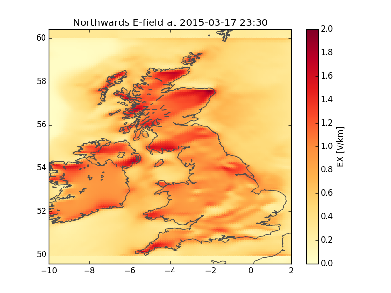 The plots below show the magnitude of the most recent modelled electric field in the UK.