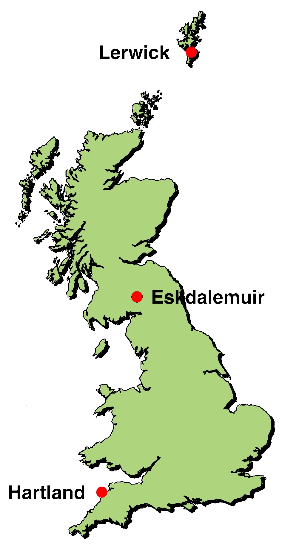 In the UK BGS run three magnetic observatories that constantly monitor the changes in the Earth's magnetic field. We have observatories in Lerwick in Shetland, Eskdalemuir in Dumfries and Galloway and Hartland in Devon.